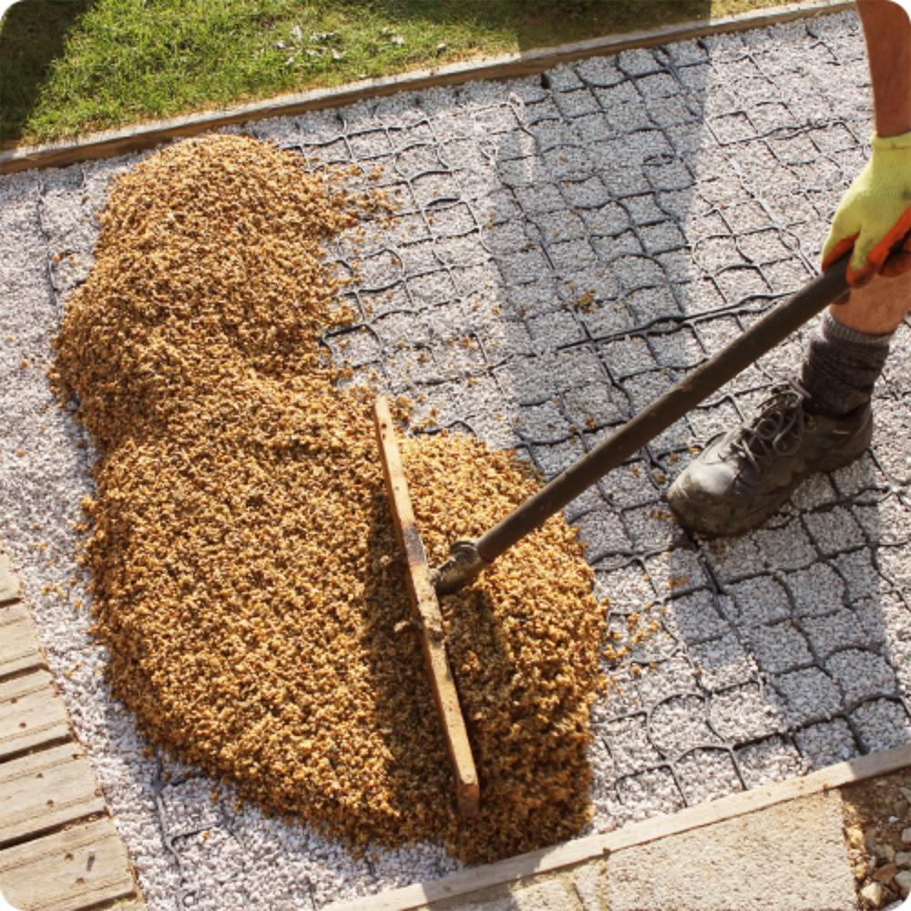 I have spoken to ECOGrid, and they recommend a sharp angular stone with a 15-25mm thickness.