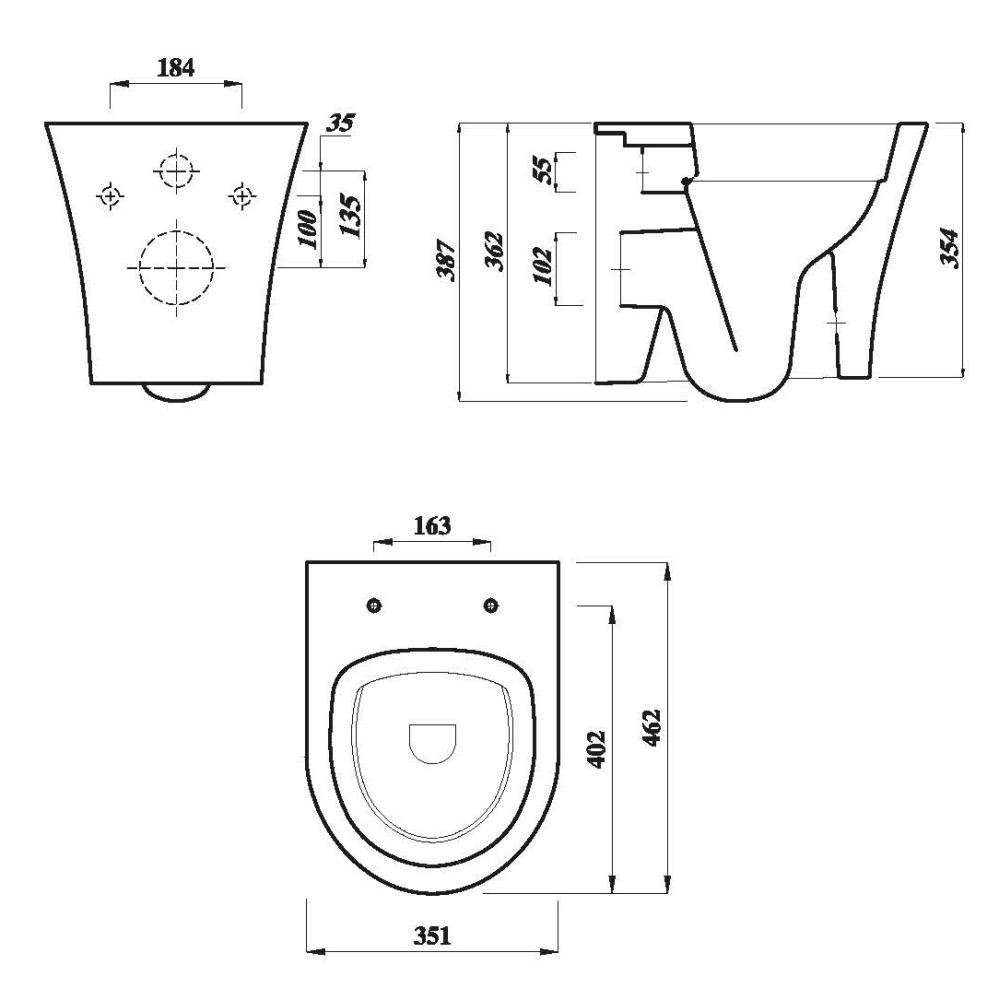 Features & Benefits: Essential Delta White Rimless Wall Hung Toilet Pan Only