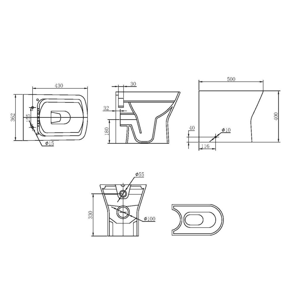 Features & Benefits: Essential Epsilon Square White Back to Wall Toilet Pan Only