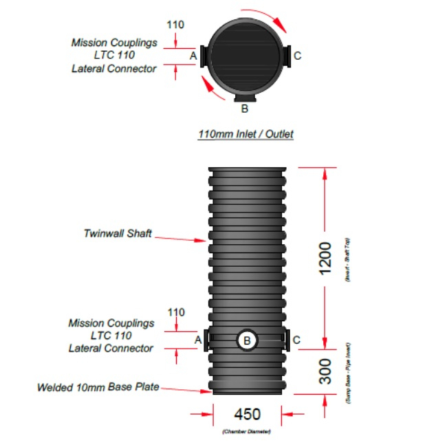 Fabricated Twinwall Gully Pot with 3 110mm Outlets and Silt Trap.