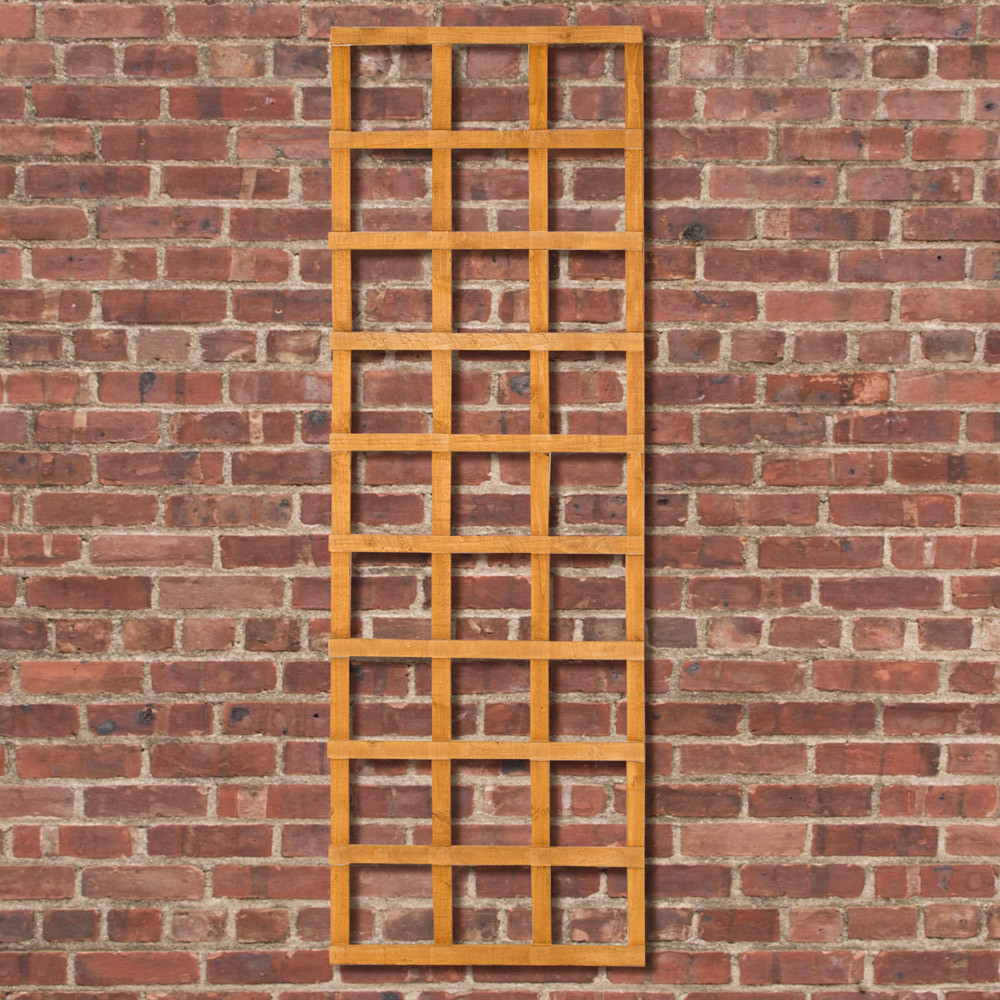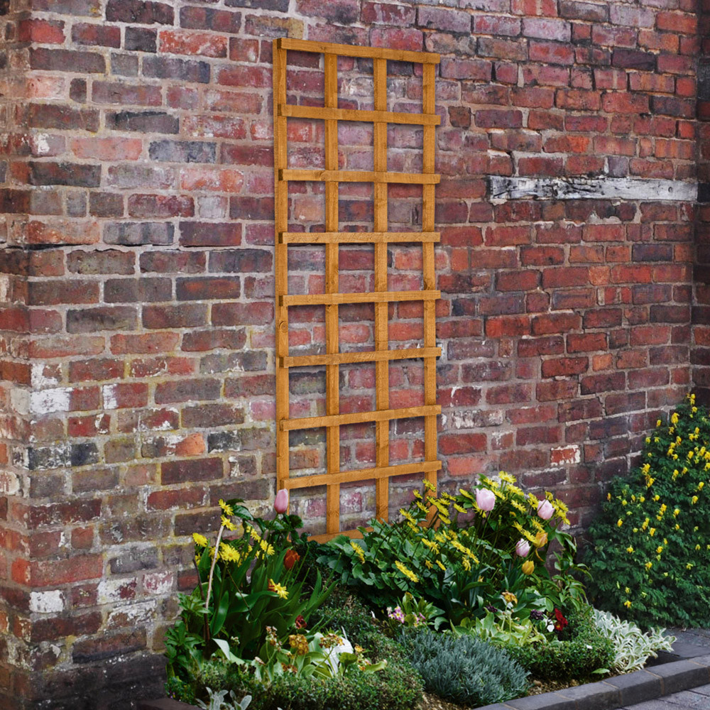 The Heavy Duty Trellis is available in a range of sizes and pack quantities and comes with a 10-year anti-rot guarantee. The dip-treated 36mm wide timber battens are spaced 163mm apart and feature a deep golden brown colour.