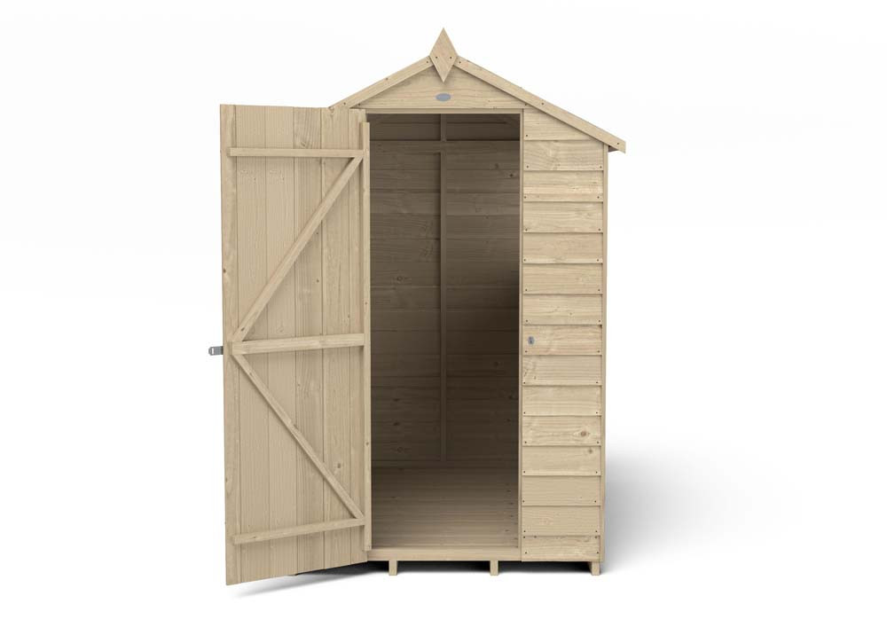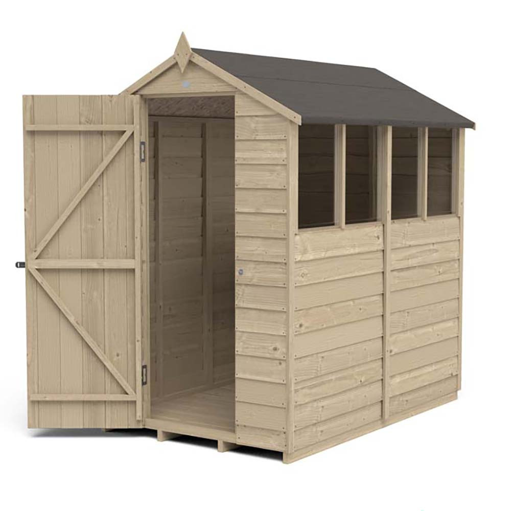 With small sections for seamless handling and installation, this Overlap Pressure Treated Apex Shed from Forest is a wonderful option for large gardens that desire a compact potting shed with four PET-glazed shatterproof windows that resist yellowing and brittleness throughout use. The modular sections have panels that are the same in size and are interchangeable, meaning that you can line all four windows on one side or two on either.