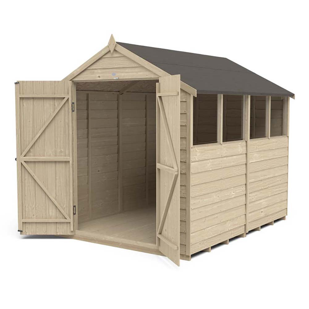 Traditionally designed and uniquely assembled, this Overlap Pressure Treated 8ft by 6ft Apex Shed features double doors and four windows. This provides you with adequate space to move around and ultimate accessibility, as well as a constant stream of natural light to brighten up the area. Ideal for use as a potting shed or for storing your garden equipment and unused home items, you can easily install and assemble the smaller sections to create a space perfectly suited to your needs.