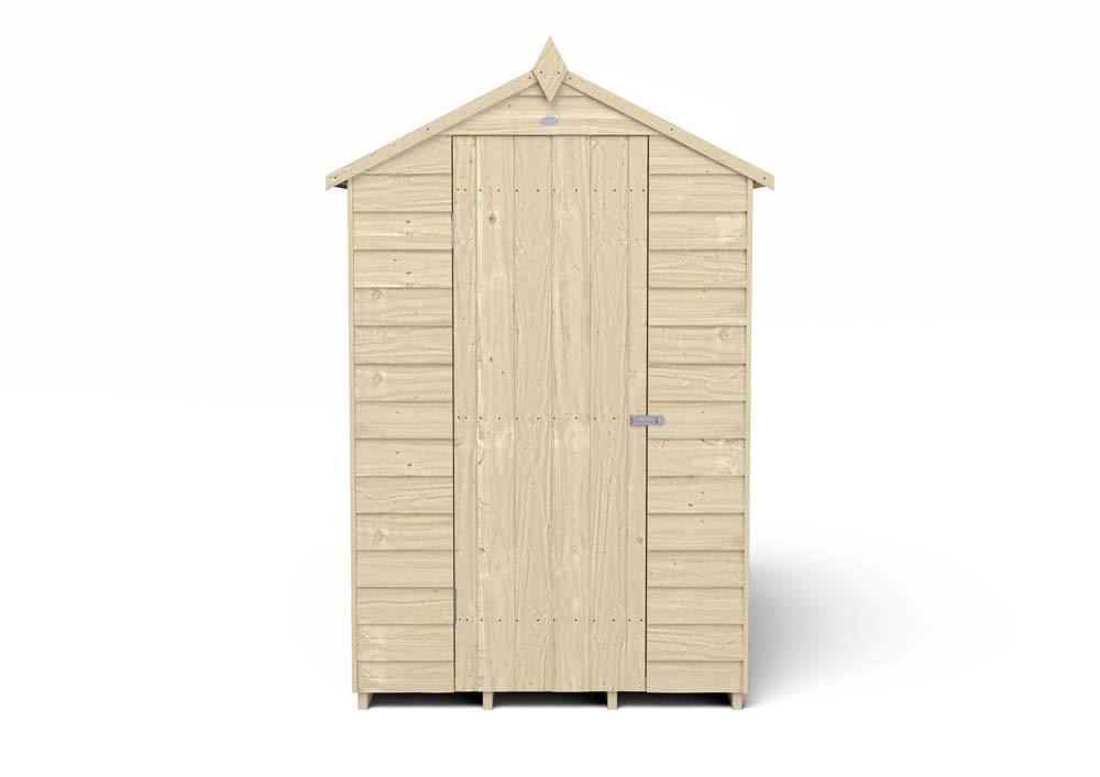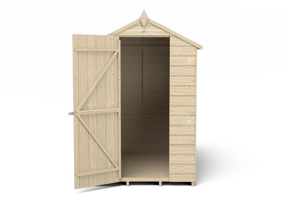 With a hidden hinge single door that has been braced with double "Z" framing and can be hung on the side that best suits your garden, this Forest Garden Overlap Pressure Treated Apex Shed prioritises security, storage space and aesthetics. The traditional overlapped boards create a visually pleasing appearance that is further optimised by the black sand felted roof and the smooth-planed barge board and finial.