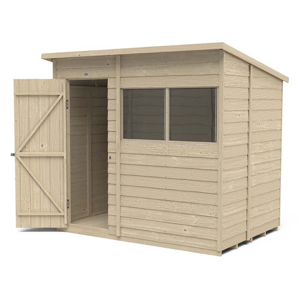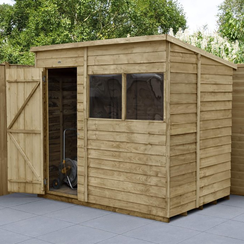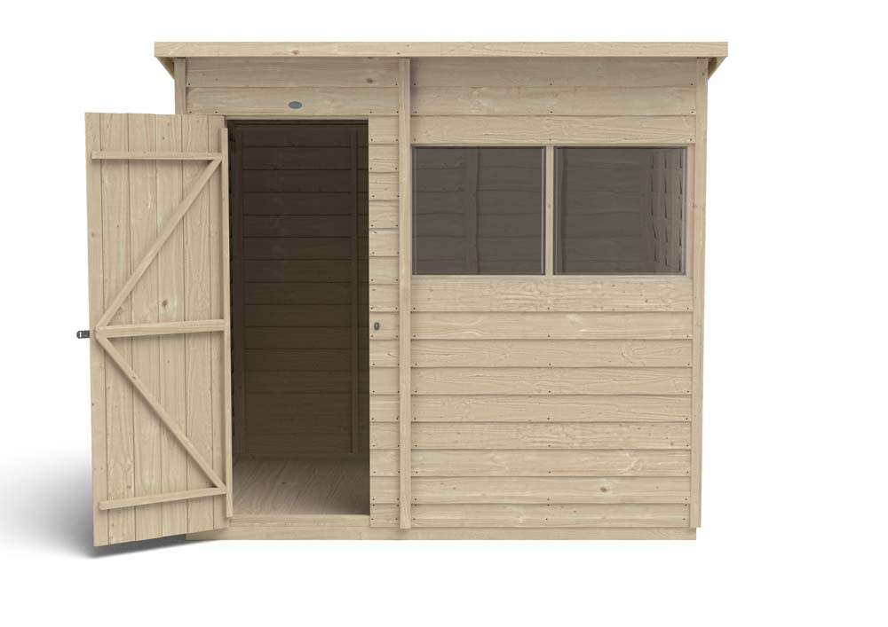 Pressure Treated to resist fungal decay and rot with an up to 15-year guarantee, this Overlap Pent Shed from Forest is versatile in use. It has the capacity to clear your garden of clutter and store your items inside, or you could utilise the two fixed windows and pent roof for a naturally lit potting shed where your plants can be sheltered as they grow. Both fixed windows benefit from shatterproof PET glazing. This stops your windows from growing brittle as time passes and also prevents them from fading to an unappealing yellow colour.