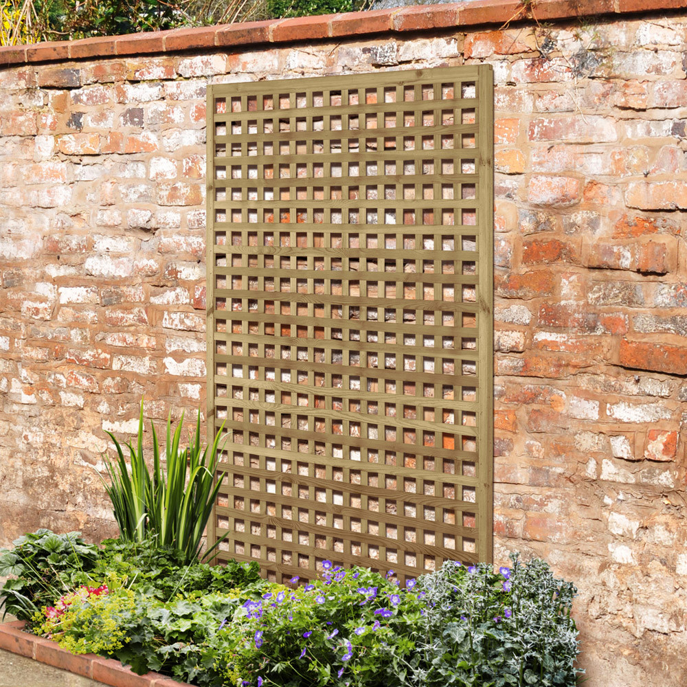• A simple square-edged chequered-patterned lattice for your garden fence or external wall