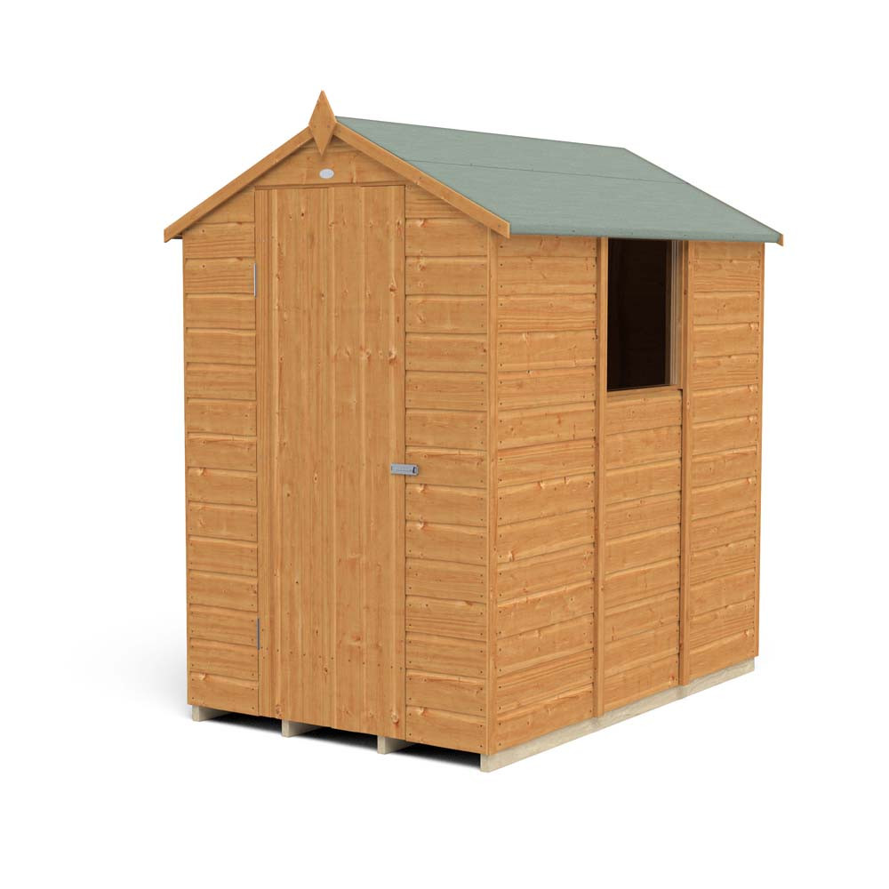Available for purchase in different dimensions to suit different sized gardens, this Shiplap Dip Treated Apex Shed incorporates more timber framing and smaller sections than before, making it one of Forest's strongest and easiest to assemble designs. The shed includes modular sections where same-size panels are interchangeable so that you can place the window panel towards the front or back of the shed and on the side of your choice when assembling.