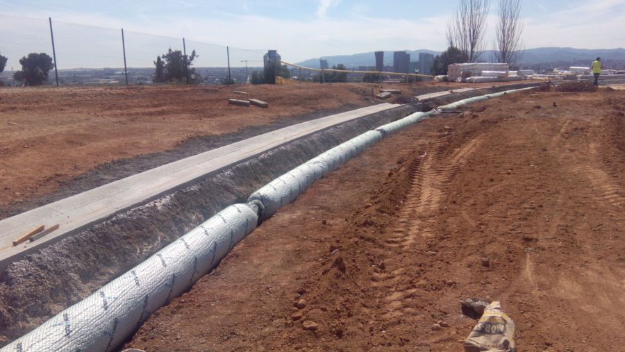 The standard product has a 110mm diameter perforated pipe, covered in EPS pellets so that the overall diameter is 300mm. These pellets are different sizes, so the drainage section will not become compacted and solidify, thereby ensuring proper drainage flow in the long-term.