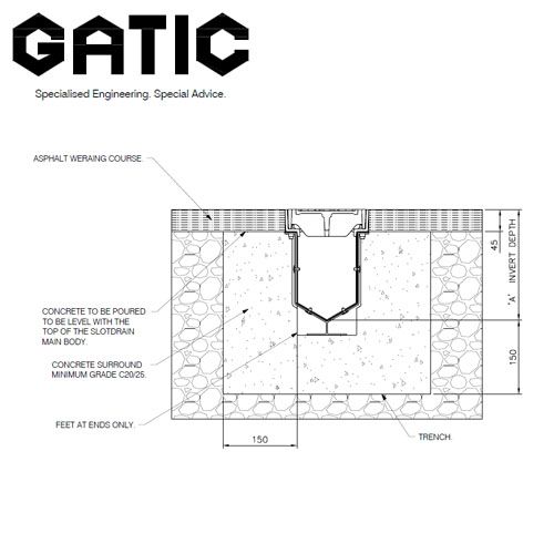 Flat-based feet at the ends of each Slotdrain section make it easy to anchor them in the trench and allow a single block of concrete to be poured under and around the main body of the channel, maximising overall strength and integrity. Single piece channels up to 3 metres in length mean fewer joints.
