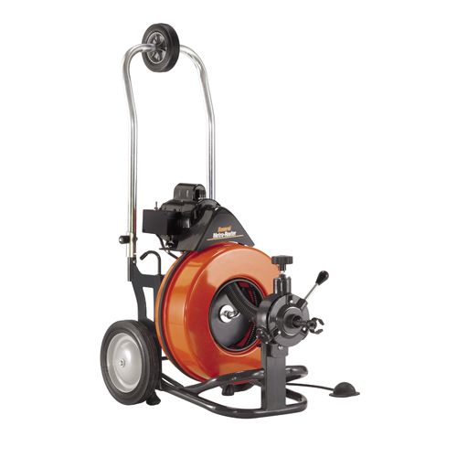 Easy to use one-person machine is light enough to take down to basements or up on roofs.Tough root cutting machine in a compact, lightweight package. Complete with 75ft. x 5/8in. cable it handles roots and other difficult obstructions in 3in.-6in. drains. Heavy-duty powder coated steel drum can hold 100ft. of 1/2in. cable for inside lines, 75in. of 5/8in. cable for roots, or 50ft. of 3/4in. cable for tough jobs. Self aligning Flexitube™ distributor tube reduces cable tangling. Heavy duty reinforced frame and drum support shaft takes rough handling in the field.1/3 hp capacitor motor has plenty of power to drive more than 100ft. of cable. Passive brake system holds the machine in place on the job and in the truck. Fitted with ten-inch wheels and a truck loading wheel for easy transport; cutter holder on the frame keeps all the cutters within easy reach. Includes Power Cable Feed.