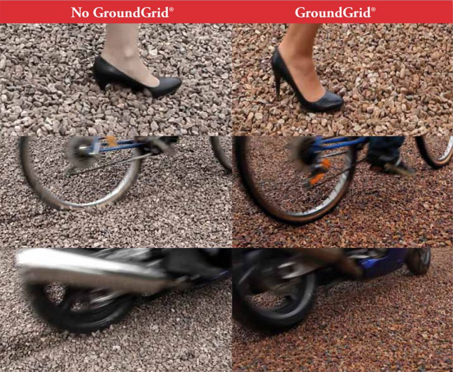 Groundgrid (55mm x 50mm cell size) is designed to be used with 8 to 16mm angular crushed gravel.
