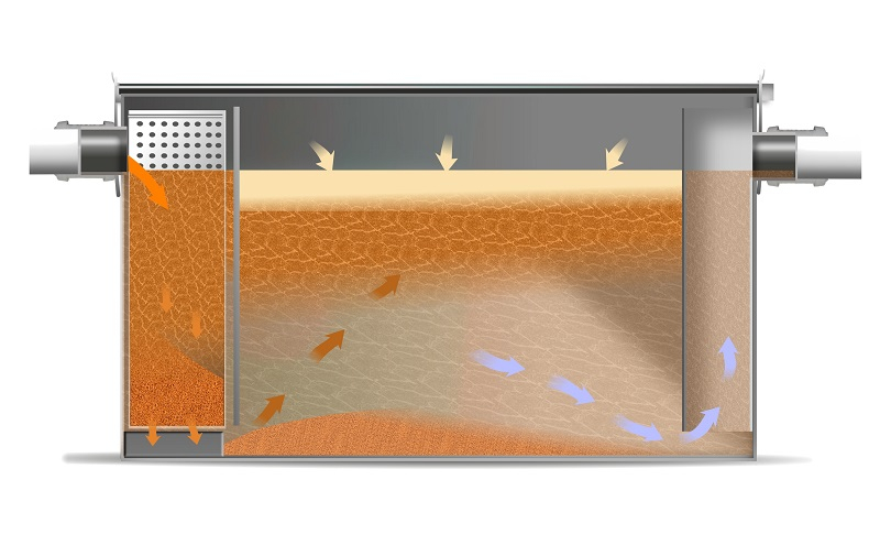 • Wastewater containing FOGs enters the unit at the inlet.