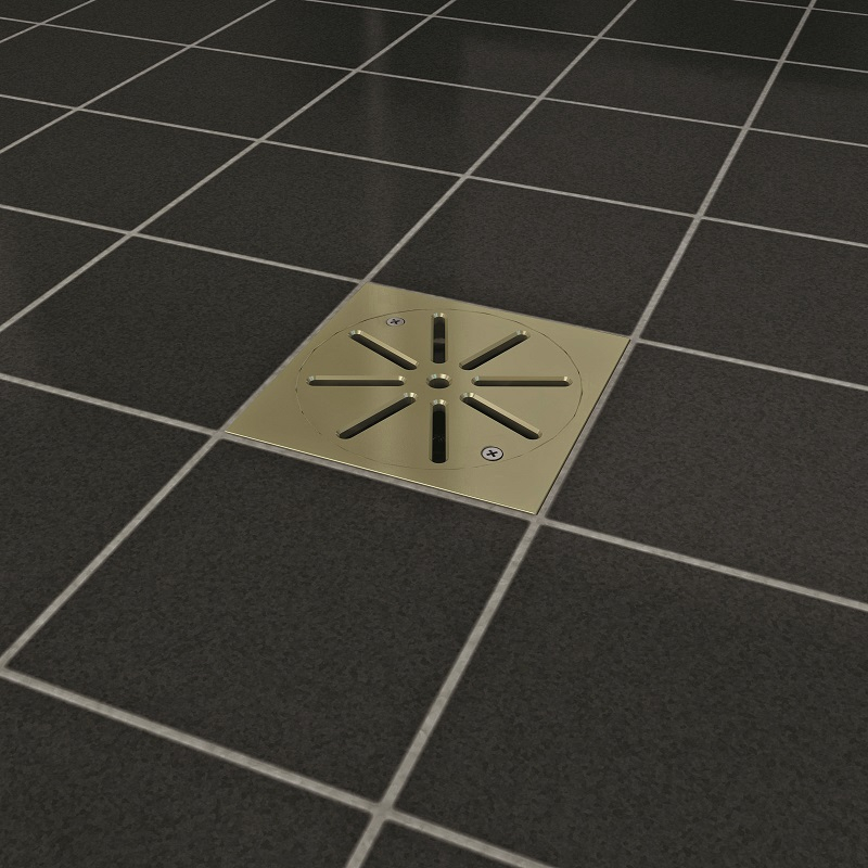 Features & Benefits: Harmer Aluminium Vertical Drain Nickel Clamp & Star Grate 200mm x 200mm - Tile Floor