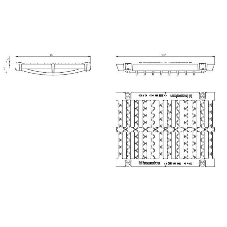 Hauraton Ductile Iron Grating F900 377mm x 40mm - 0.5m