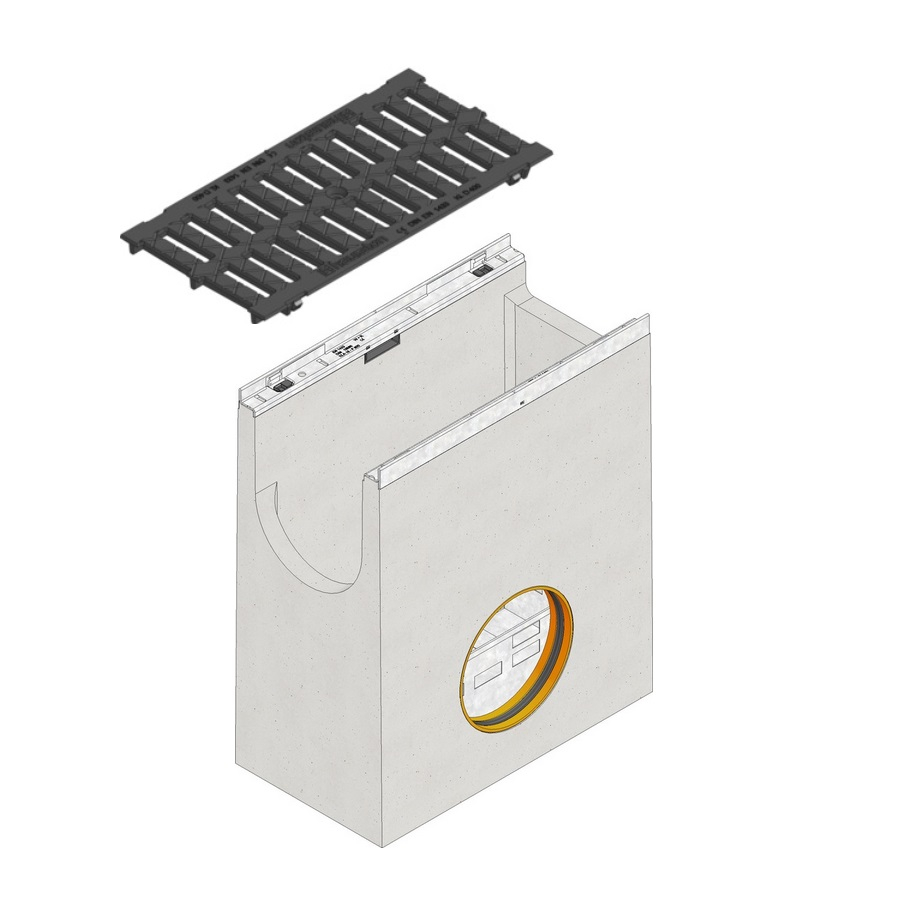 A perfect option for completing installations of Hauraton Faserfix KS200 channel drain systems, this Faserfix KS200 Sump Unit is ideal for gathering debris from water. It includes a D400 Ductile Iron Slotted Grate, suited to withstanding 40 tonnes in various applications, including roadways and streets.