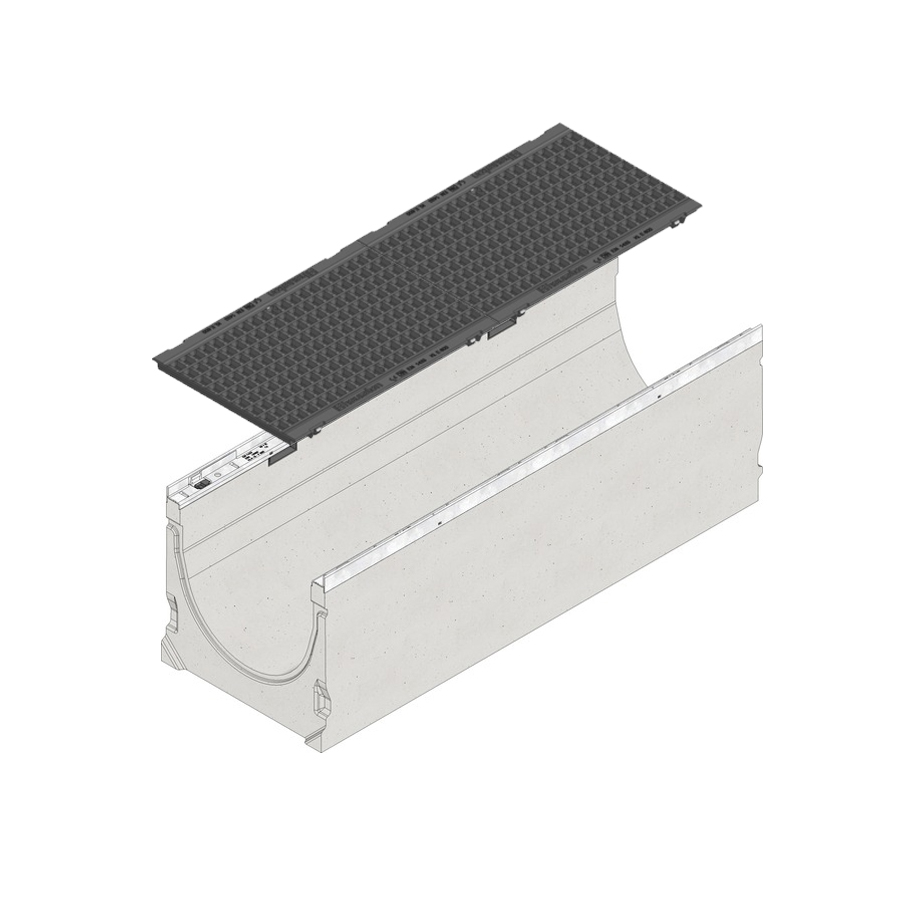 Made from fibre-reinforced concrete, this KS300 channel base from Hauraton's Faserfix range is suitable for up to E600 class loading thanks to the ductile iron grate. It is ideally suited to a range of applications in school yards, sewage plants, industrial buildings, pedestrian zones, railway platforms and more.