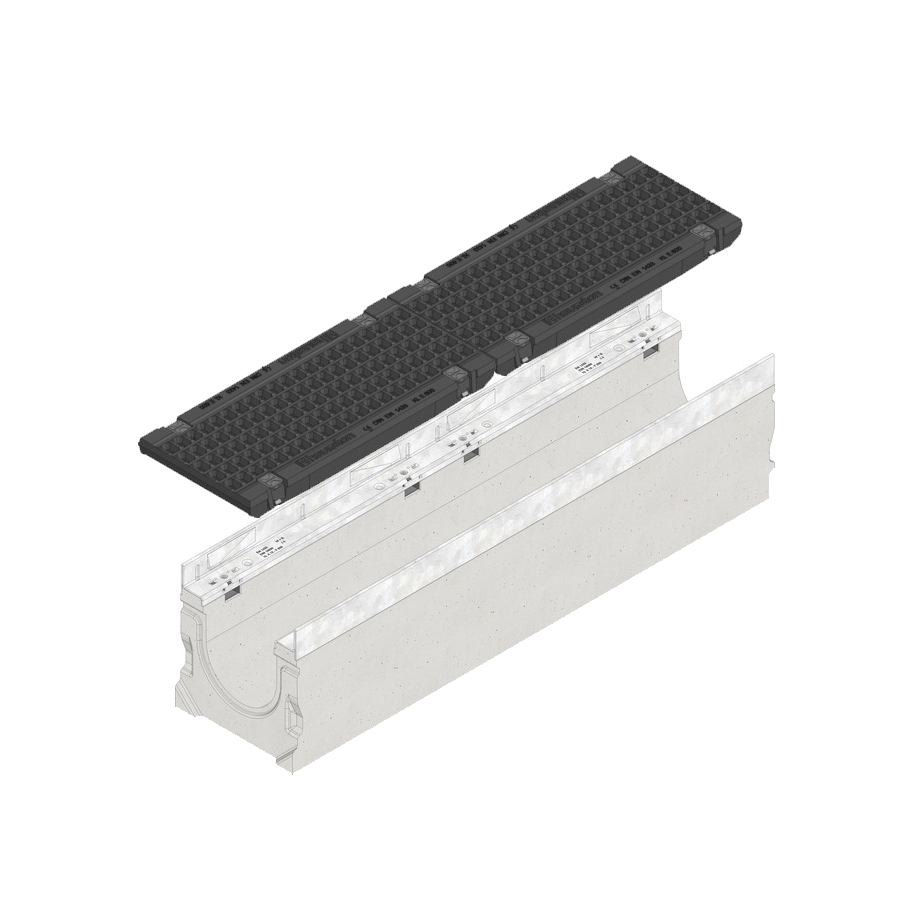 Suitable for areas with E600 loading, this strong and durable channel and grating are manufactured with fibre-reinforced concrete and ductile iron. Whether you're fitting it in an industrial estate, loading bay or cargo handling yard, you can rely on the tough structure to last for the long term.