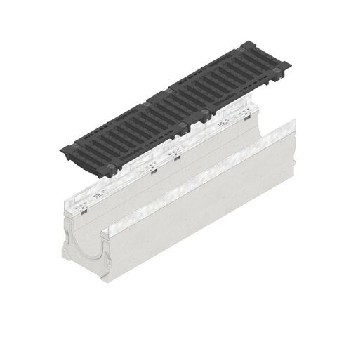 Offering structural support for intense loads and dynamic forces due to its thick channel walls, this FASERFIX SUPER 150 Channel and F900 Bolted Ductile Iron Slotted Grating from Hauraton features a fibre-reinforced concrete base with an F900 weight class.