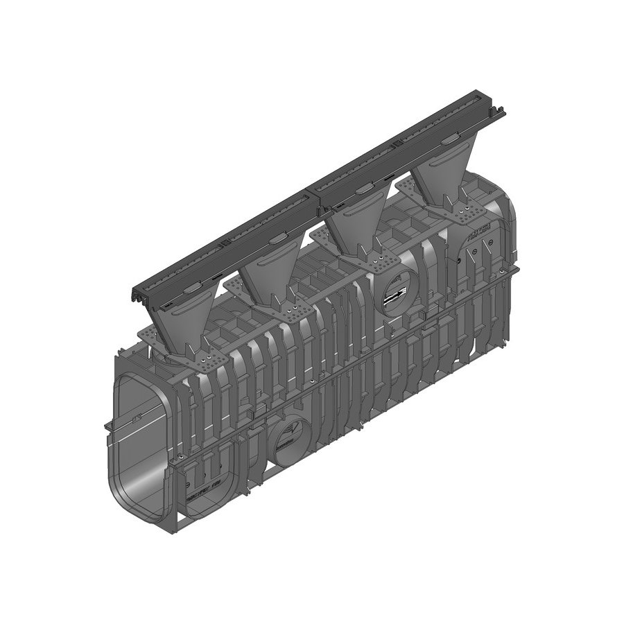 With an F900 loading classification, this Hauraton Recyfix HiCap F 3000 Channel and 14mm Ductile Iron Slot is part of a closed-channel drain system with a modified polypropylene body. It can be installed in a variety of applications, including military facilities, airports, industrial yards and other commercial and highly industrial areas to provide subtle and attractive drainage that holds its own.