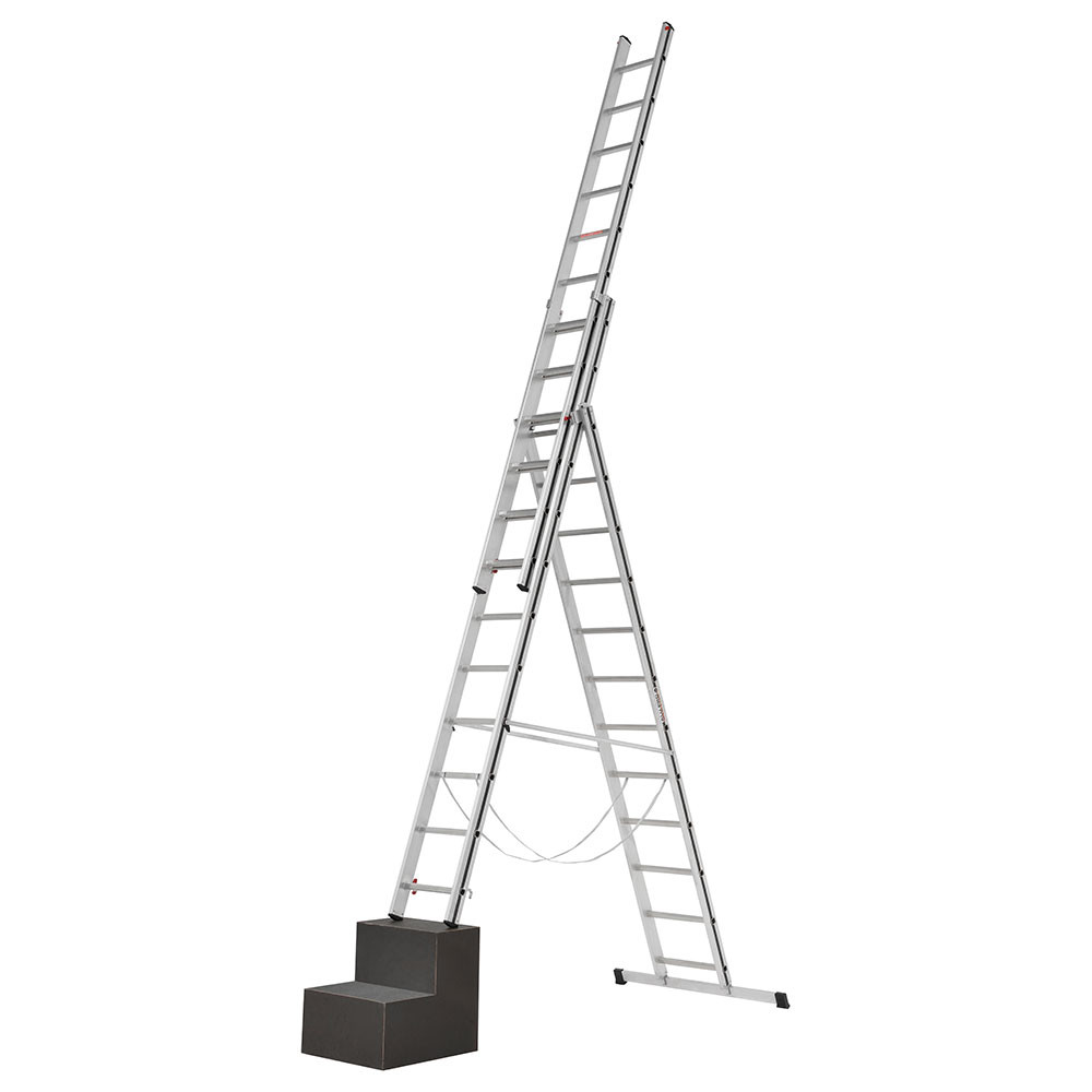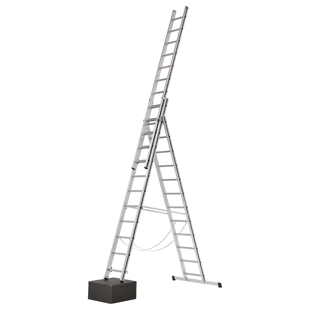 This Hymer AluPro Three-Section Black Line Combination Ladder features a fixed, rigid stabiliser bar for added strength. Ideal for various jobs, this versatile ladder can be used as a leaning, extension or free-standing ladder.
