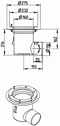 • 1x industrial drain with Ø232mm frame and Ø110mm horizontal outlet