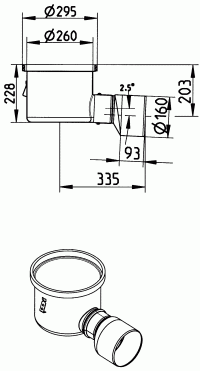 • 1x industrial drain with Ø295mm frame and Ø110mm horizontal outlet