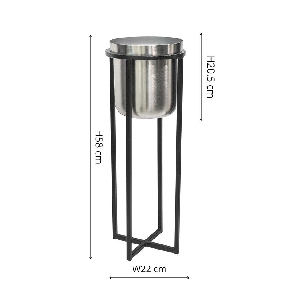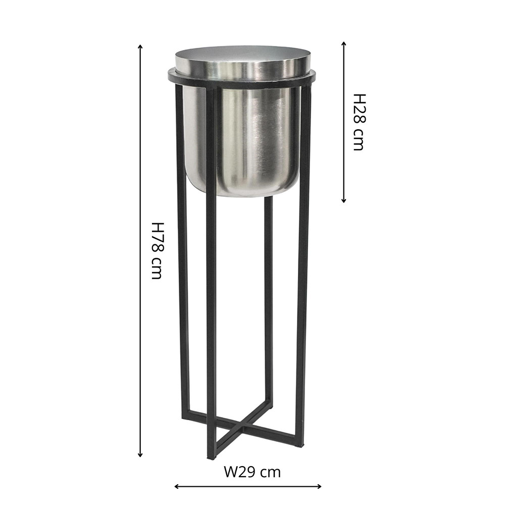 • A stylish, modern design comprising a black metal stand and a pewter-toned planter