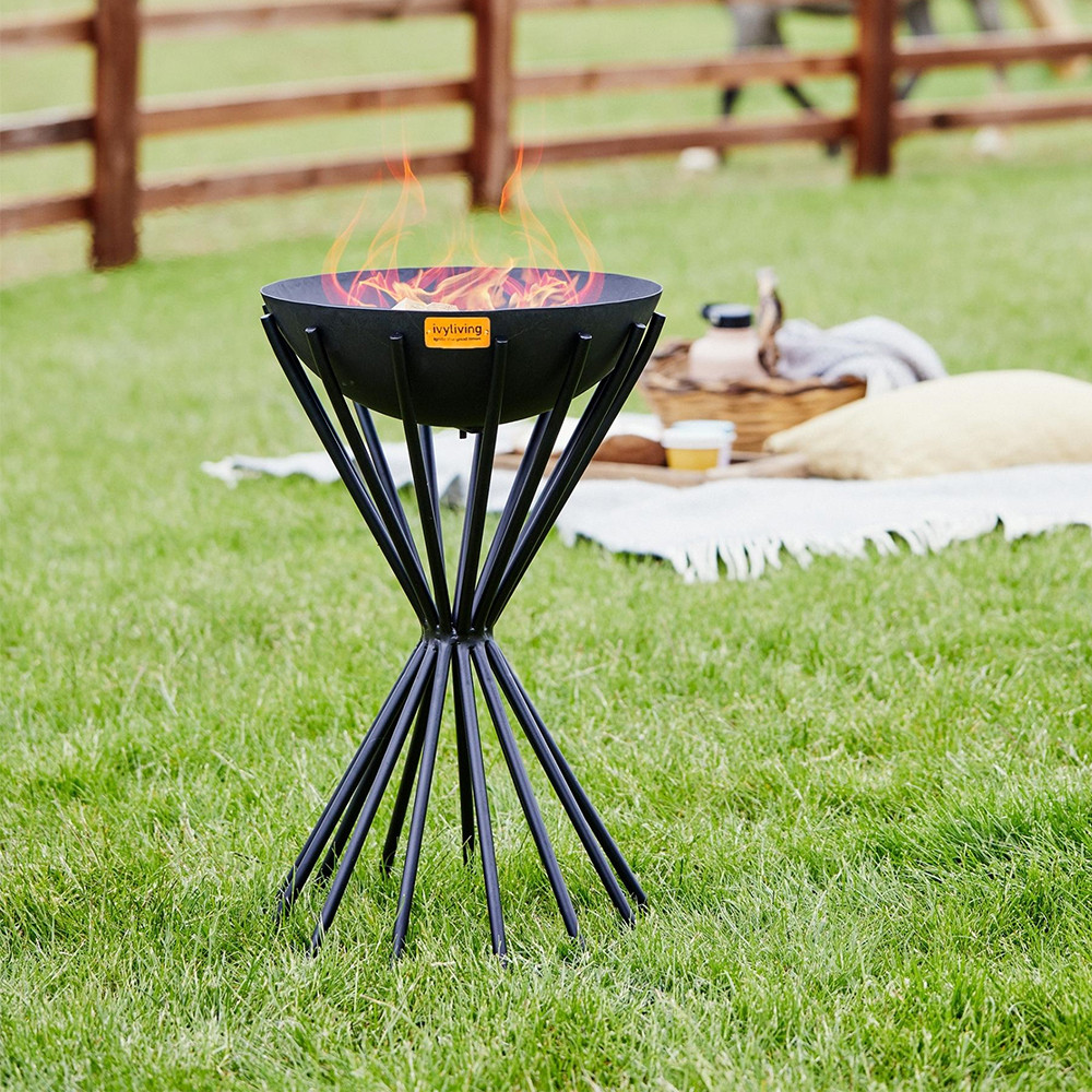 Are you looking to create a warm and inviting atmosphere in your outdoor spaces, perfect for socialising and entertaining friends long into the evening? If so, meet the 650mm x 380mm Ivyline Dakota Black Outdoor Tall Fire Pit, a large circular fire pit featuring a contemporary design with multiple tapered legs and a sleek black finish that exudes a contemporary charm.