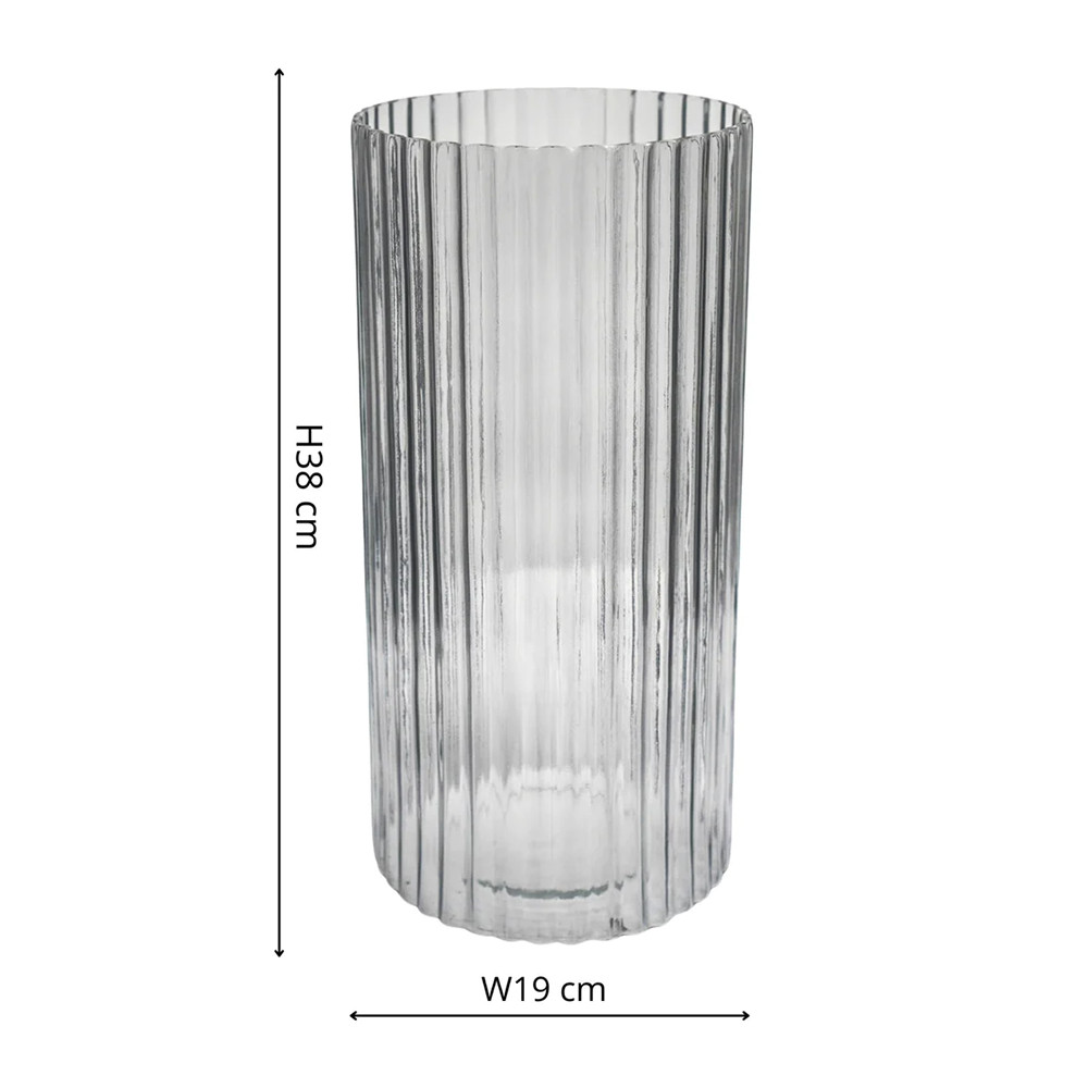 Features & Benefits: Daphne Clear Indoor Ribbed Glass Vase - 380mm x 190mm