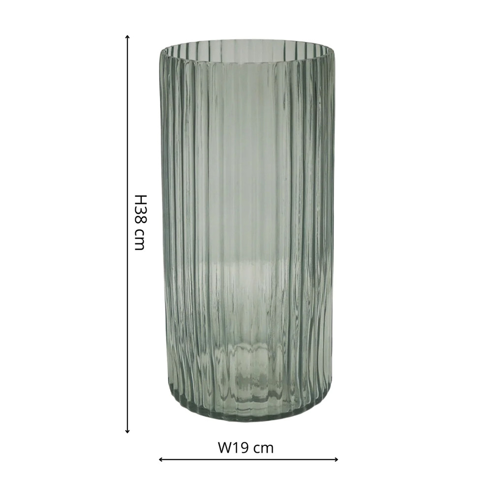 Features & Benefits: Daphne Sage Indoor Ribbed Glass Vase - 380mm x 190mm