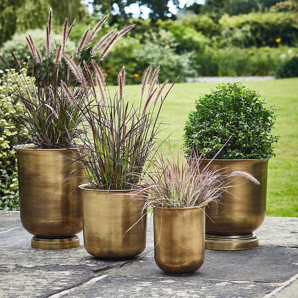 Whether adorning garden patios or gracing the entrance to your conservatory, elevate your garden with the Hampton Antique Bronze Outdoor Metal Urn by Ivyline - a fusion of sophistication and nature. Its captivating antique bronze finish exudes a timeless charm, adorning your garden with enduring elegance. The iconic urn shape effortlessly complements both authentic Mediterranean garden designs and contemporary minimalist design trends, making it a captivating centrepiece no matter where it is situated.