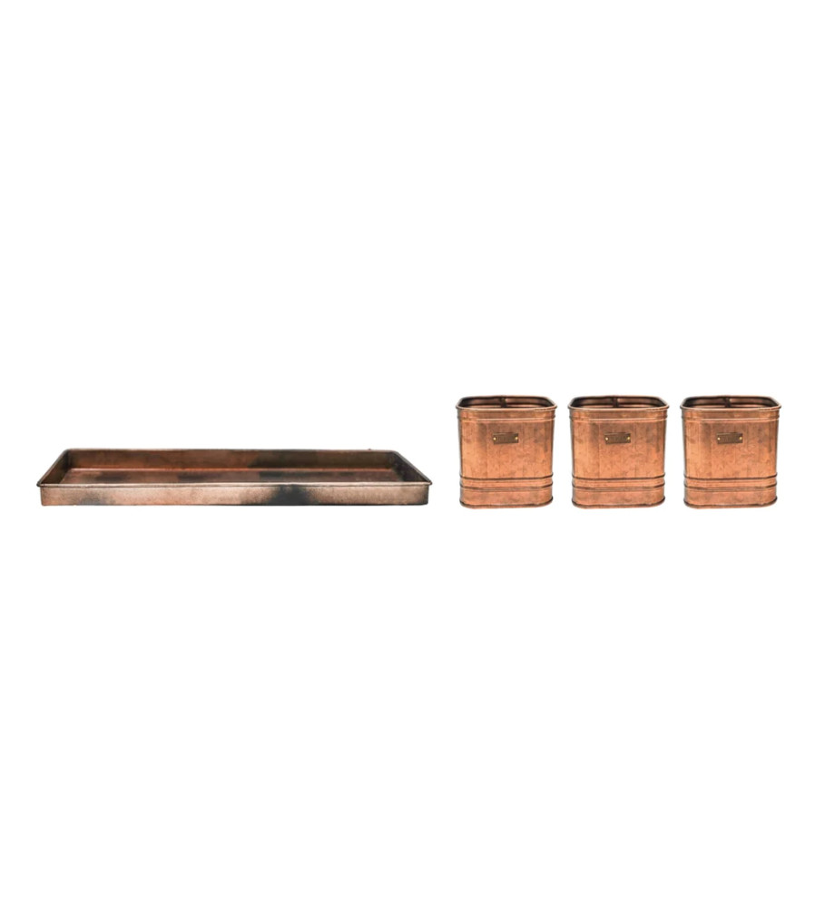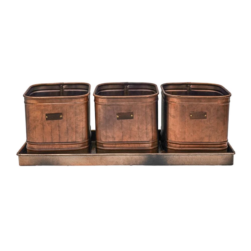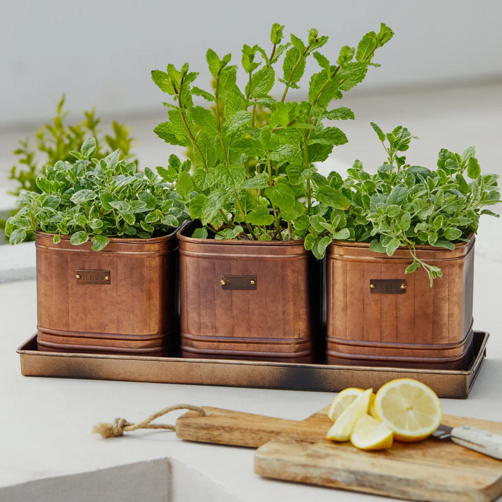 Features & Benefits: Hampton Copper Outdoor Metal Herb Planters with Tray Set of 3 - 140mm x 420mm