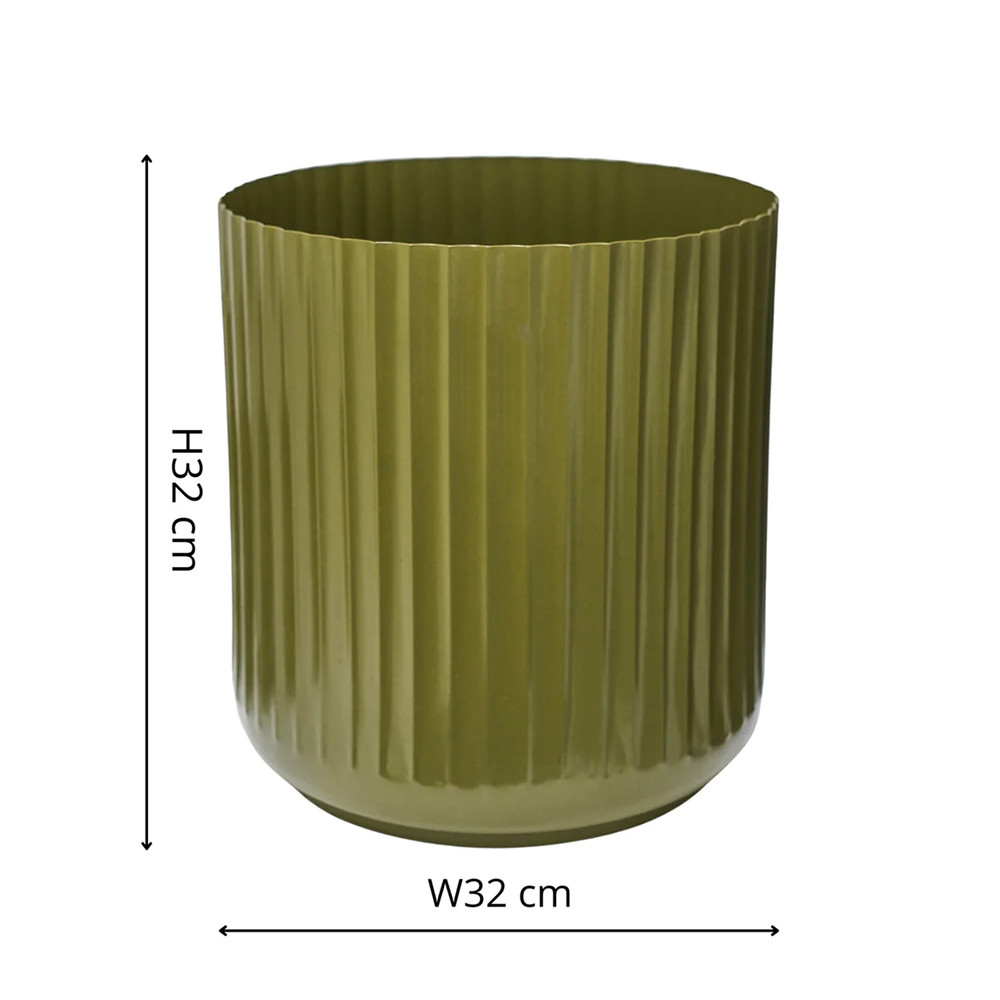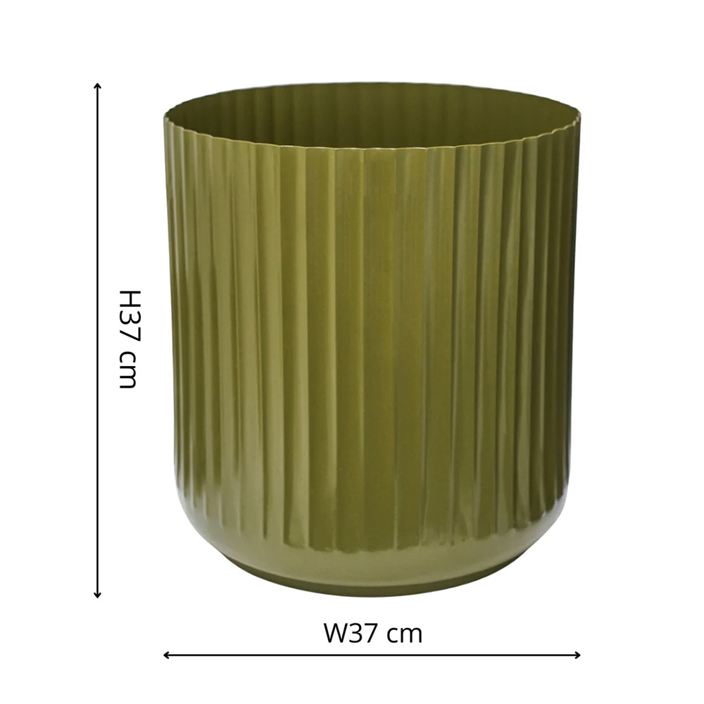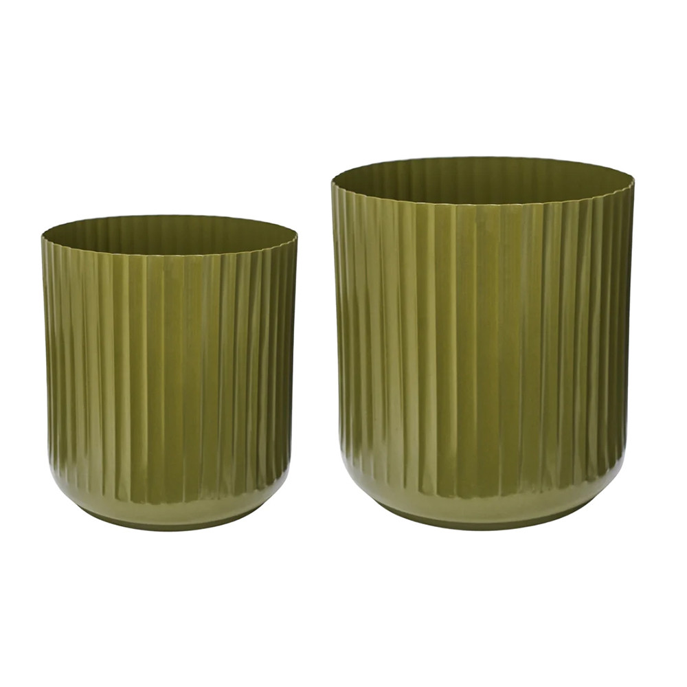 • A stylish pair of planters featuring a fresh green finish and decorative corrugated edge