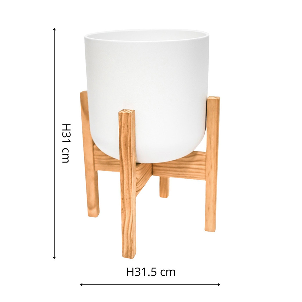 Lisbon White Indoor Ceramic Pot & Wooden Stand