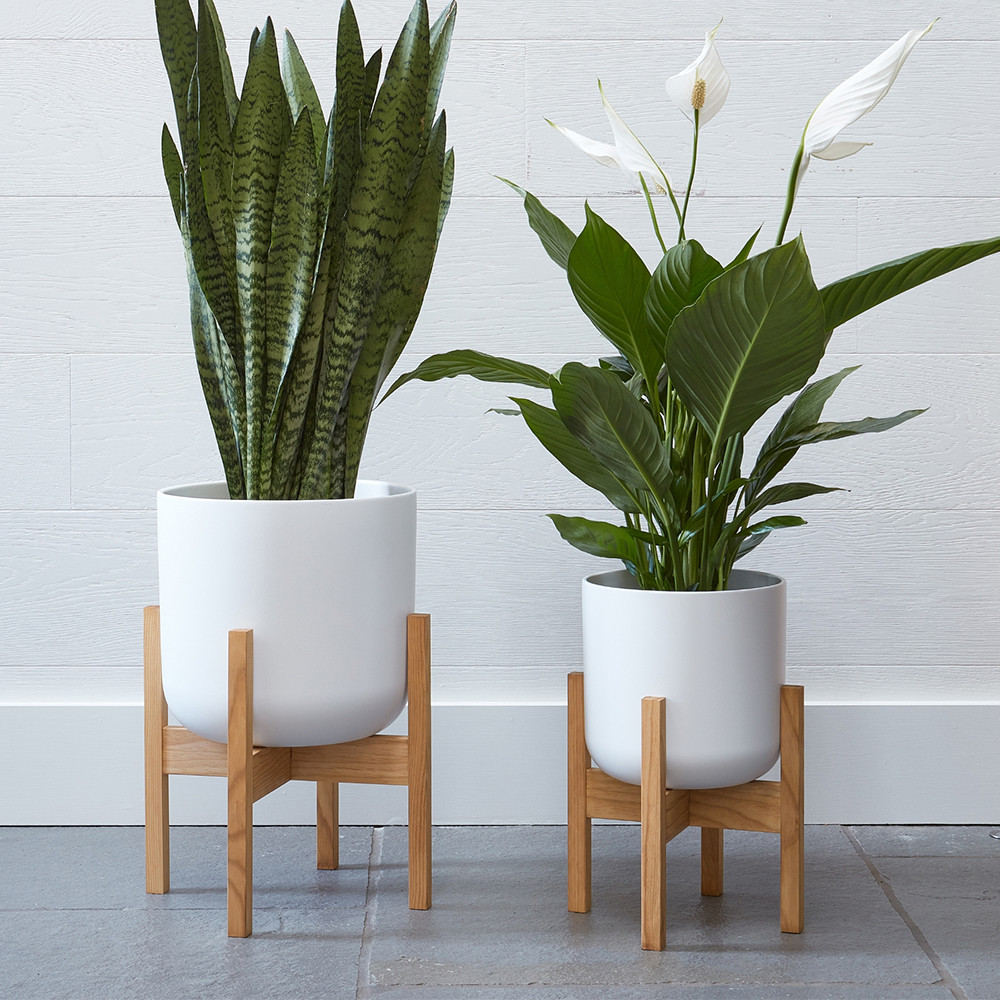 Features & Benefits: Lisbon White Indoor Ceramic Pot & Wooden Stand