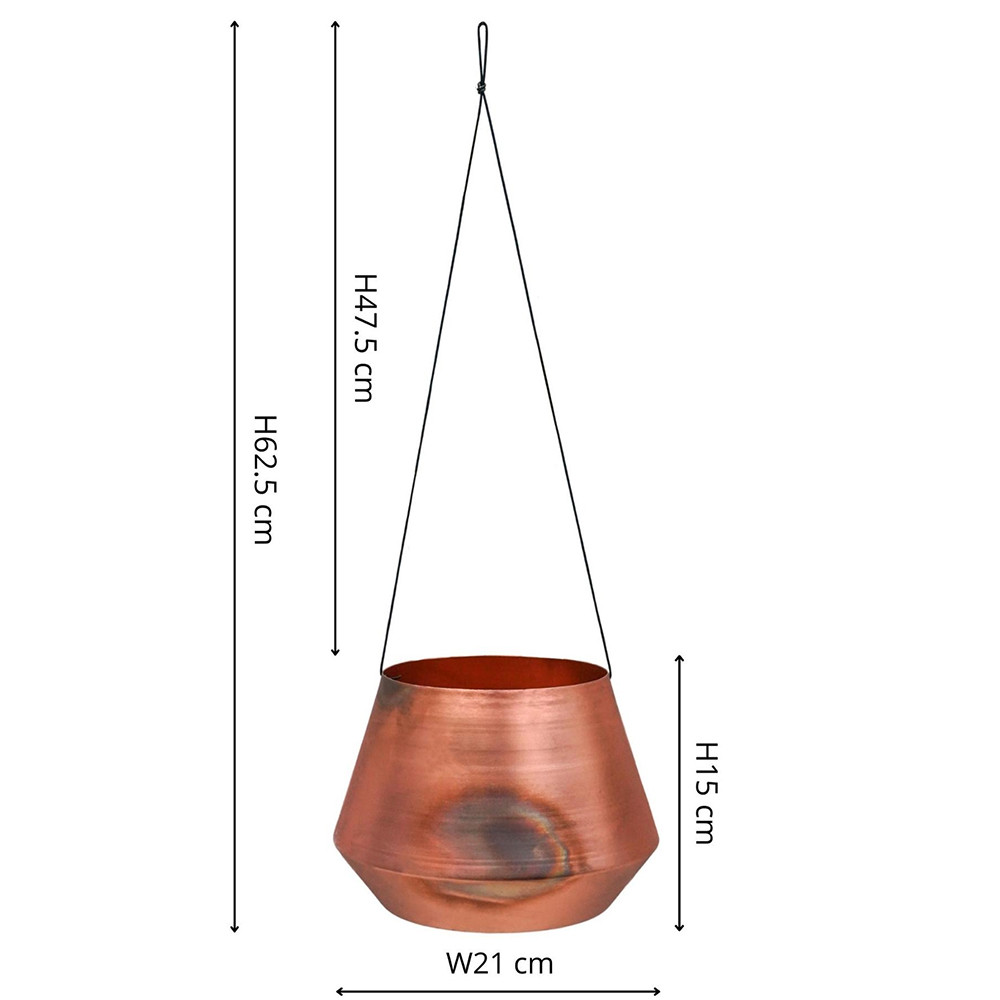 Features & Benefits: Soho Indoor Aged Copper Hanging Planter with Leather Strap - 1500mm x 210mm