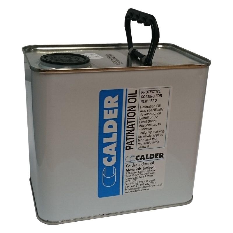 Specifically developed for the industry by Calder on behalf of the Lead Sheet Association. Patination oil minimises unsightly staining and imparts a pleasing appearance to newly applied lead sheet and flashings.