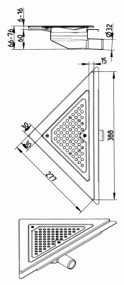 Crafted with a durable AISI304/EN1.4301 stainless steel structure, this Mini Shower Drain Stainless Steel Triangular Corner 32/40mm is from Blucher. It is perfect for applications with concrete and tiled floors and has a Ø32/40mm horizontal outlet, as well as a triangular liqu... Read More