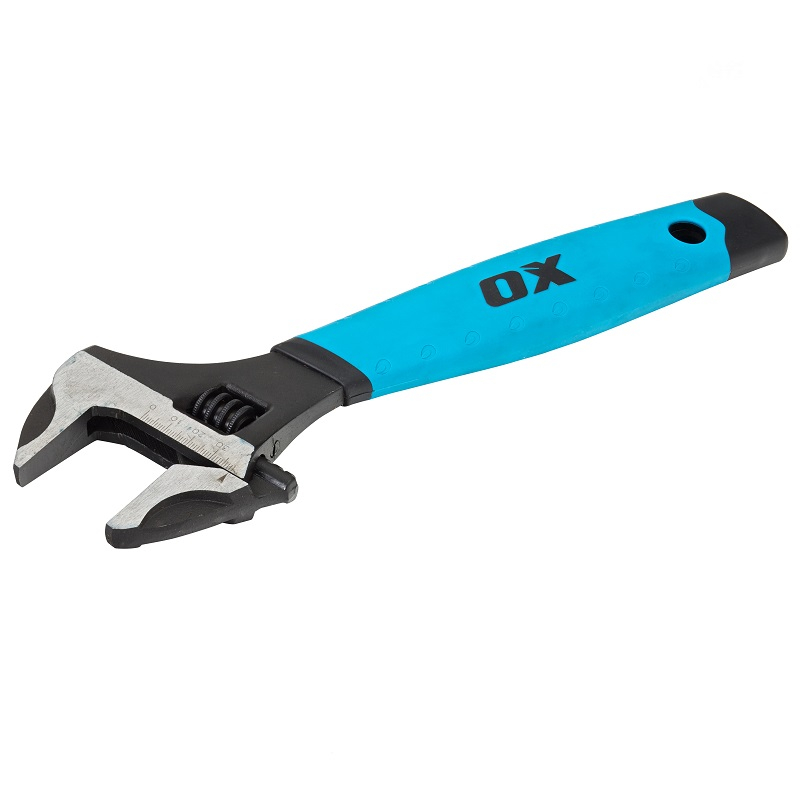 The Ox Pro adjustable wrench has a narrow head design perfect for limited space applications.
