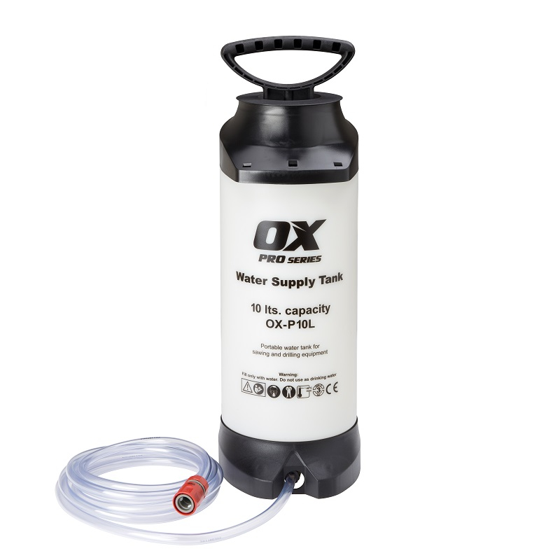 Ox Pro’s Heavy Duty 10L dust suppression water bottle, also known as water suppression bottles, suppresses the dust created when sawing or drilling by spraying water whilst the drilling or sawing takes place.