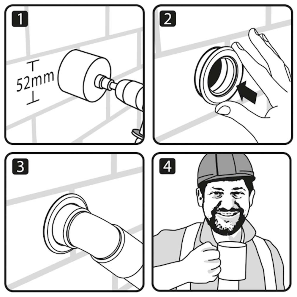 Used to quickly and efficiently provide an airtight seal around your internal and external pipework and help achieve net-zero carbon targets and compliance with Part L of building regulations, the PipeSnug Waste Pipe Collar will fit 52mm core-drilled holes and is available in ... Read More