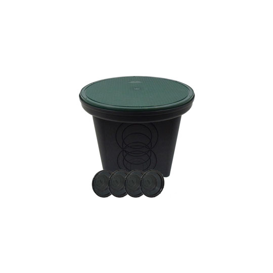 This box is great for large applications such as golf courses but is also a suitable size for the home. There’s no need to worry about different coloured fittings or plugs to inventory because as well as accepting 2”, 3” & 4” pipe, our equal flow distribution boxes can also accept 6” pipe. Our 20” Drain Box will also accept our 20” Risers so you can easily bring the Drain Box to grade.