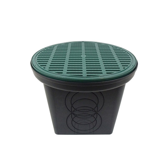 The round drainage boxes are great for landscaped area applications such as golf courses but is also a suitable size for the home garden. They are available in 500mm diameter with seven 110mm pipe connection points or 300mm diameter with four 110mm pipe connection points and seals.