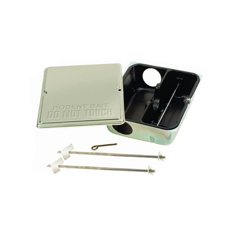 Rat Trap Strongbox Rat Bait Station Description • Temper-Resistant bait station. • Lockable lid. • Bait rod for use with wax blocks. • Ground anchors included. • Use indoors or outdoors.   Read More