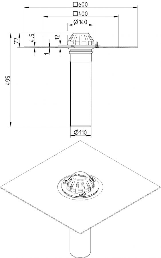 The outlet is designed for compatibility with gravity-bitumen collar Blucher series drains, offering a reliable solution for your roofing needs. The flange, which measures 400mm x 400mm, provides stability and easy integration into your roofing system. Crafted from stainless steel (AISI 304/EN 1.4301), this outlet guarantees durability and resistance against corrosion, making it a practical choice for long-term use.