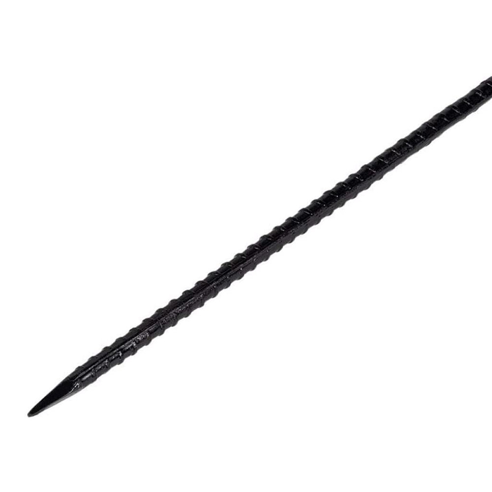 They have hardened tips for use in hard ground and are painted black to protect against rust.