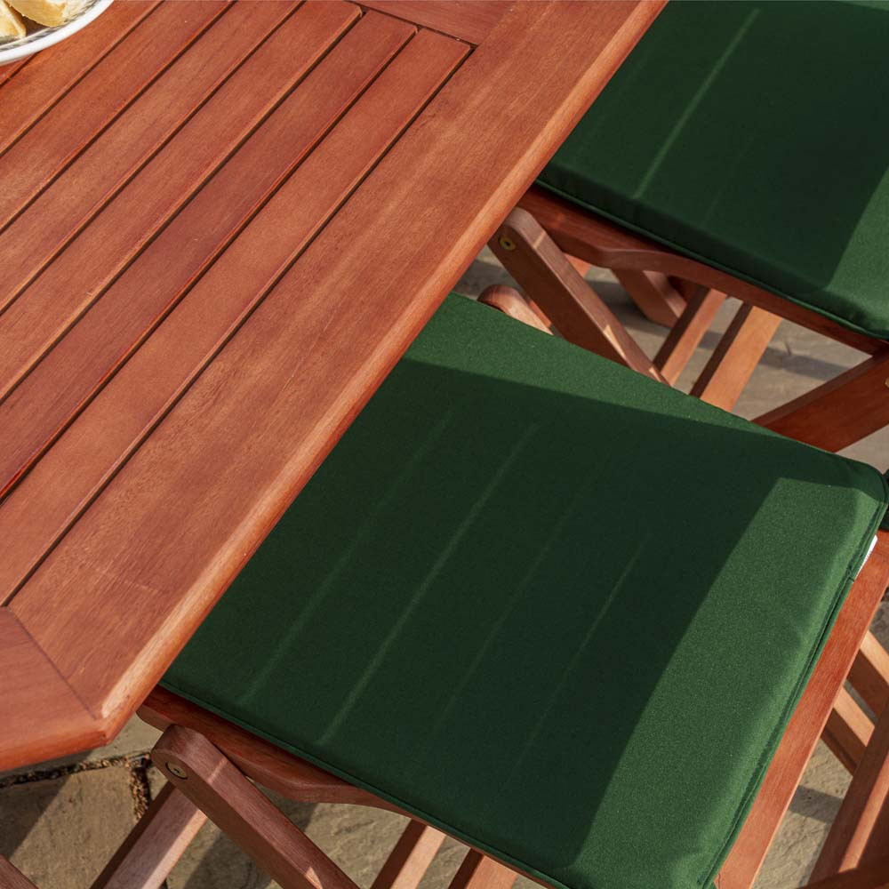 Should a sudden downpour occur or you simply wish to clear some space on your patio or veranda, the table and chairs can be folded away quickly and easily. This means you can store the entire set within a garage or large shed with minimal hassle.