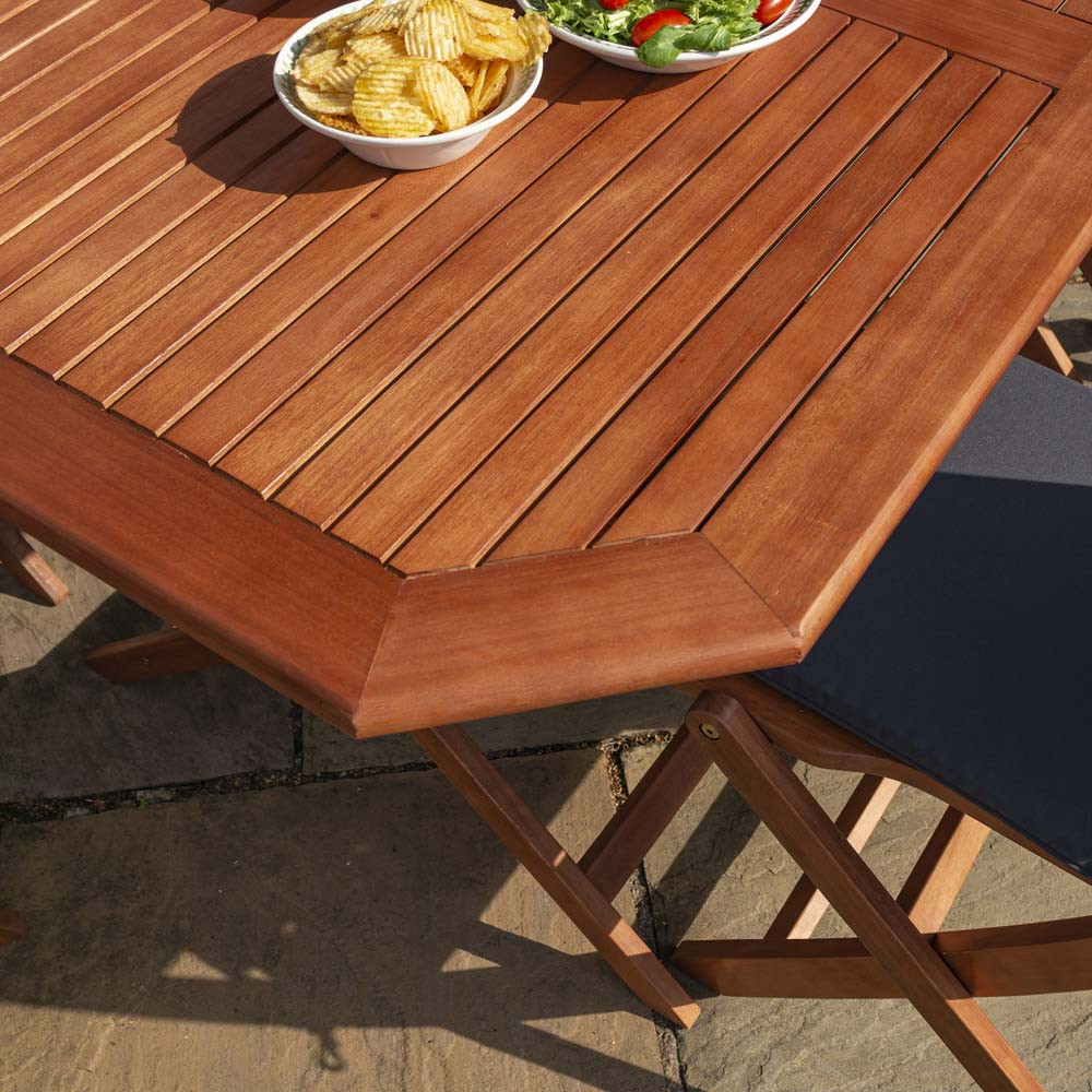 The Rowlinson Plumley Six-Seater Hardwood Dining Set is the perfect affordable garden dining solution that incorporates an elegant and modern style with practicality and versatility. As well as an octagonal-shaped dining table, the set includes four dining chairs, two armchairs and a grey-coloured parasol.