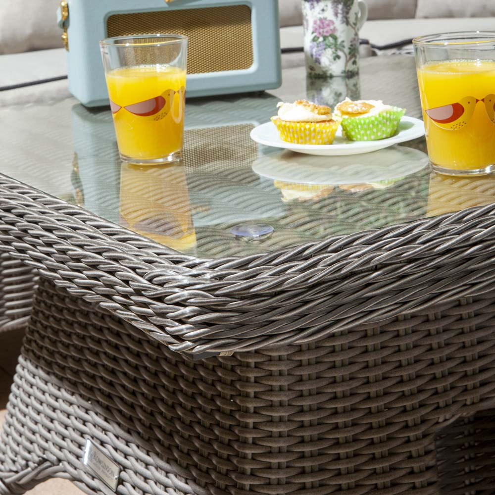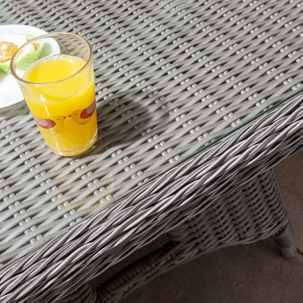 The table's height-adjustable design allows you to raise it to a dining table height for when you're using it for family meals and then lowered to the height of a coffee table for when relaxing with a coffee or an evening glass of wine. Its glass tabletop will provide a stable surface to place drinks as well as make sure the rattan surround is protected from stains that may occur.