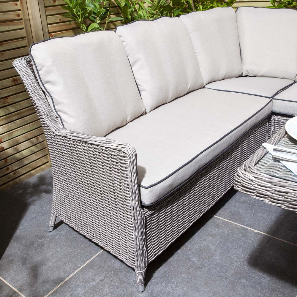 Features & Benefits: DISCON - Rowlinson Prestbury Corner Rattan Dining Set - Natural Stone